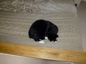 Lots of people have asked how the two resident cats have coped with the arrival of two new cats and a whole new family of people and their furniture. We’ve been amazed, frankly. We seem to have had very little blood: quite a bit of bad language, and a few flapping paws, but no outright fights. There’s been quite a lot of territory carving. Charlie owns the dining room table; Merlot owns Caroline’s bed; Cleo owns Liz’s bed; and Rose owns most of the rest of the house. Our bed is still no-mans-land with Charlie and Cleo dominant but Rose making inroads.