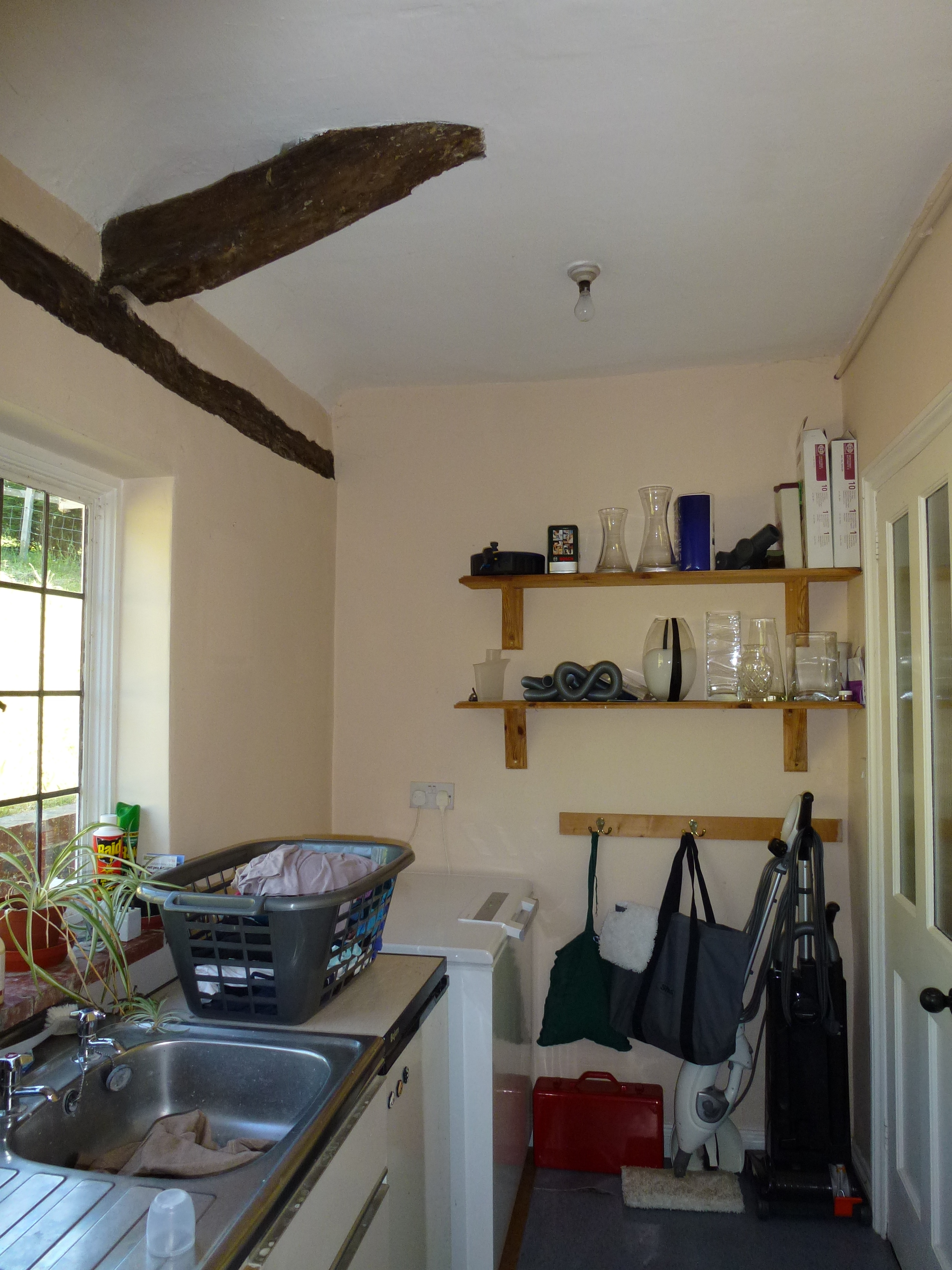 When he stripped back the paper over the mantelpiece, the plaster crumbled away and we could see that there was another beam under there, about six inches above the mantelpiece and the width of the entire chimney breast. I didn’t manage to get a photo of it, sadly, because the plasterers covered it over again very quickly.