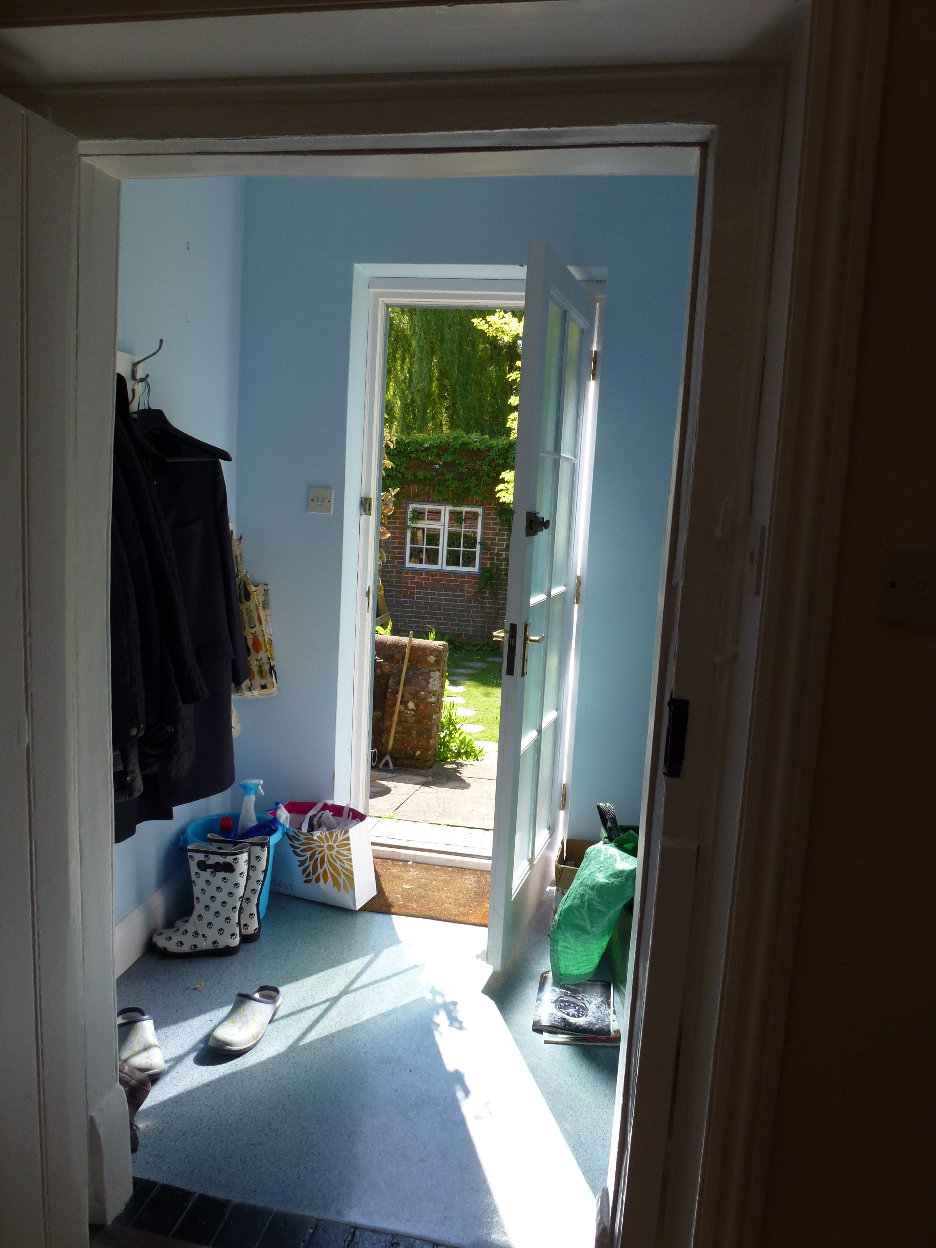 We didn’t find any other big surprises except to discover that the coving is wooden, not plaster as we had assumed. We had also already worked out that the ceiling is false, but probably dating back a hundred years or so – there will be a huge beam under the centre of the ceiling, like we have in all the other front rooms. The wooden coving, though, helped us to work out when the false ceiling was fitted. And we found that the tiles around the fireplace were oxblood red, which came as a total surprise!