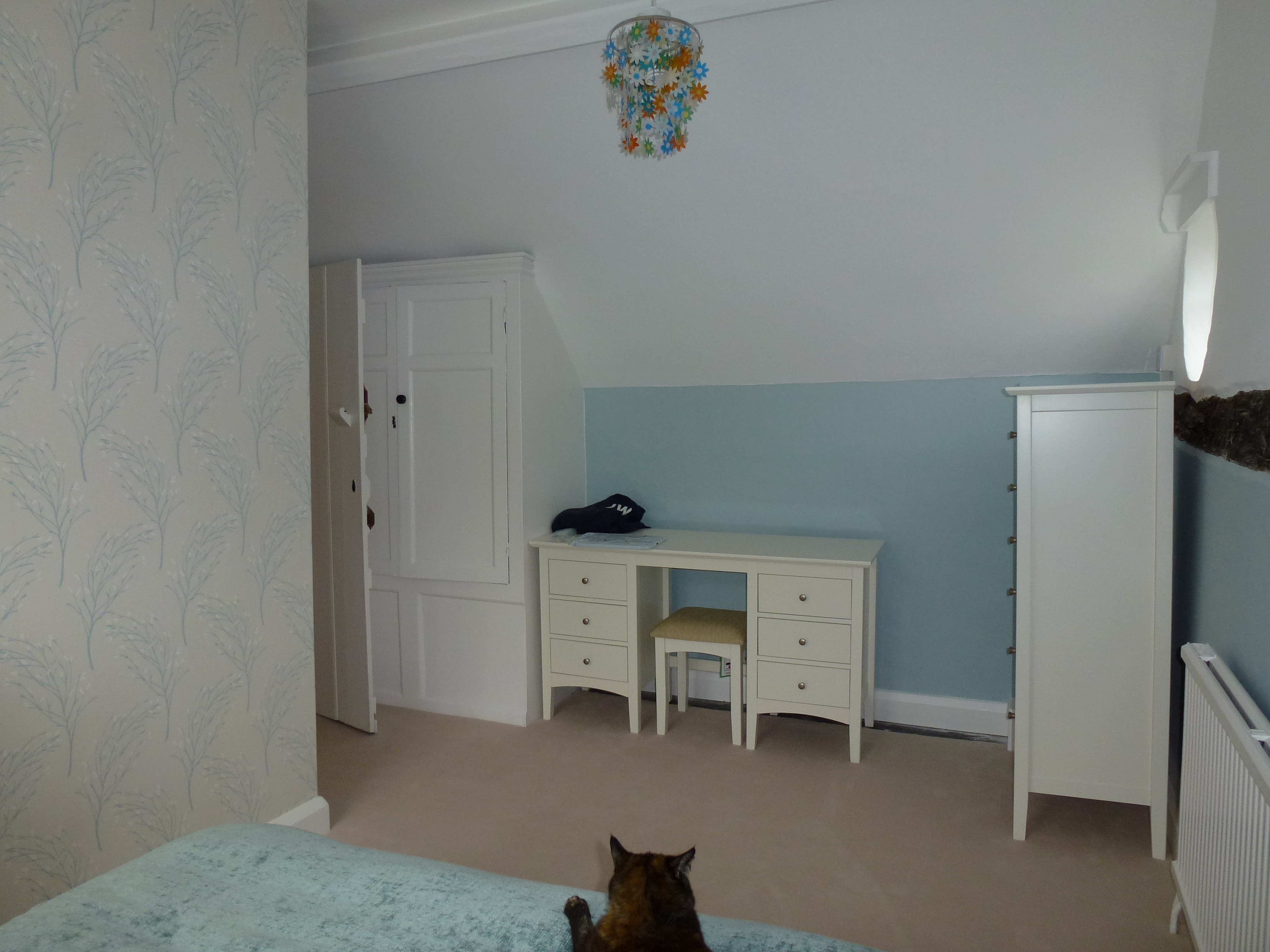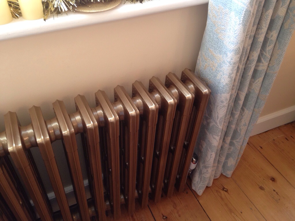 We also had lovely cast iron radiators fitted which are warm as toast. Now that the roof is better insulated, too, we have been finding it very warm, and we have had to turn the heating off rather than on!